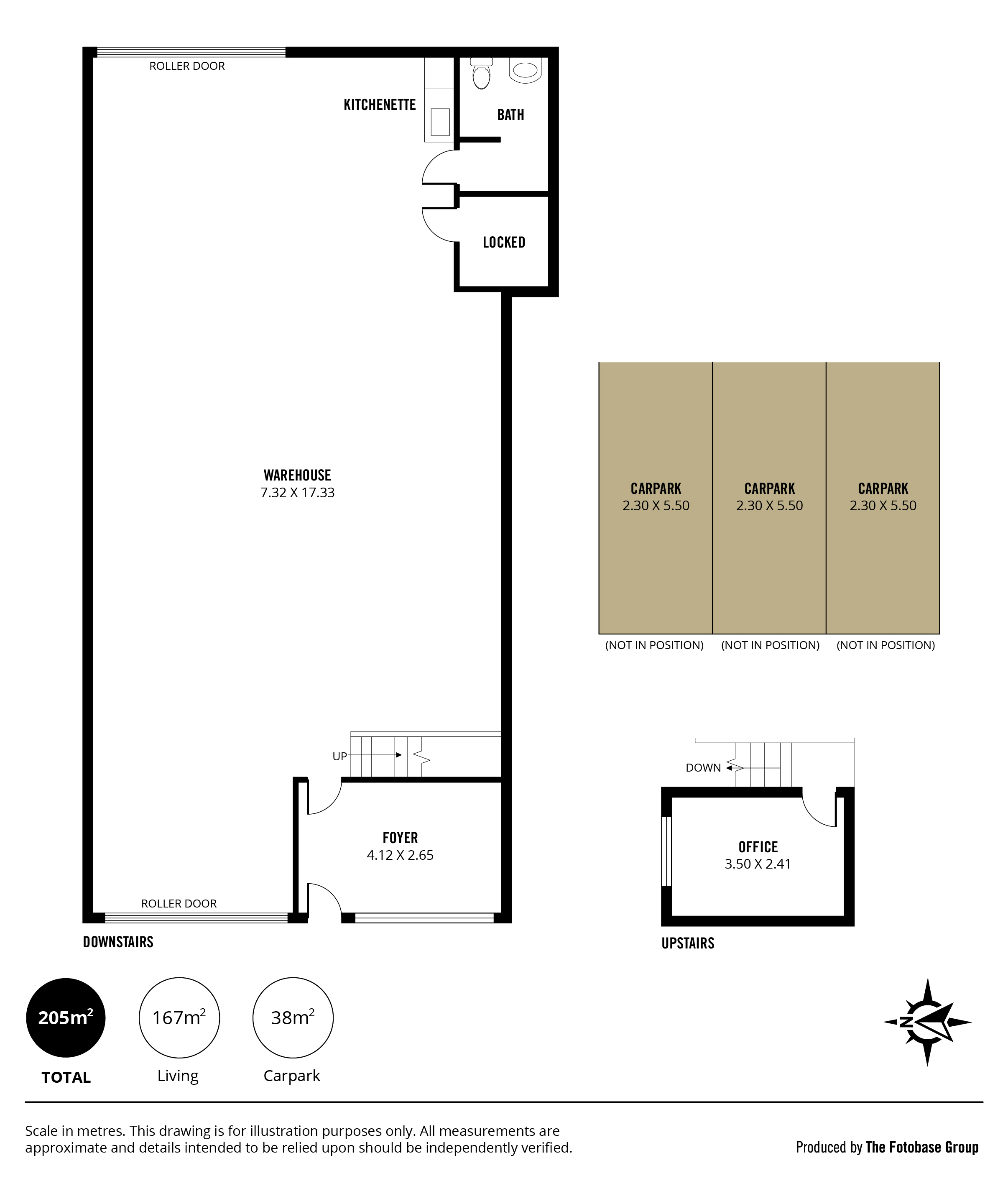 Total area: approximately 167 sqm*Office/showroom, amenities, and warehouse3-phase powerFront and rear roller door access (approx. 3.9m wide x 4.5m high)Rear service lane accessSecurity alarm systemSecurity bollardsLocated within a tidy and established industrial group